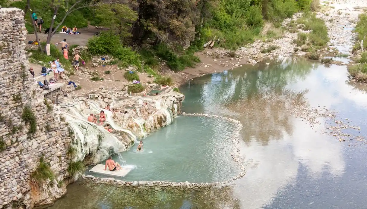 Le terme di Petriolo Già nel Quattrocento in quest’area fu costruito un complesso termale, di cui è visibile ancora oggi l’intera struttura fortificata in pietra. Durante il Rinascimento le terme divennero molto popolari, tanto che venivano frequentate dai Medici e dai Gonzaga. L’acqua della sorgente termale, che sgorga a 43 gradi, è fortemente solforosa e ricca di anidride carbonica e minerali quali calcio e fluoro, e ciò le dona una serie di proprietà salutari e benefiche, oltre a prevenire e curare patologie croniche dell’apparato osteo-articolare, dell’apparato respiratorio e della pelle, grazie alla loro azione antinfiammatoria. La fama delle terme di Petriolo è arrivata fino ai giorni nostri, e la zona adesso è una meta imperdibile di un tour della Toscana. Vi è un’ampia area completamente libera lungo il corso del fiume, in cui sono state ricavate delle piscinette termali naturali che ricordano vagamente le più note terme di Saturnia, dove sulla riva è possibile distendere il telo e sdraiarsi; l’ampia zona ombrosa adiacente è l’ideale per chi vuole sfuggire al sole, specialmente durante la stagione estiva. Potrete quindi godervi un giorno alle terme completamente gratis, ma ricordate che la zona è del tutto naturale, pertanto non troverete servizi come spogliatoio o toilette. Per chi preferisce tutti i comfort sono disponibili gli stabilimenti termali vicini, sorti in tempi recenti lungo il corso del fiume, con ingresso a pagamento. - https://www.toscana.info/siena/provincia/terme-di-petriolo/